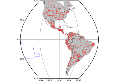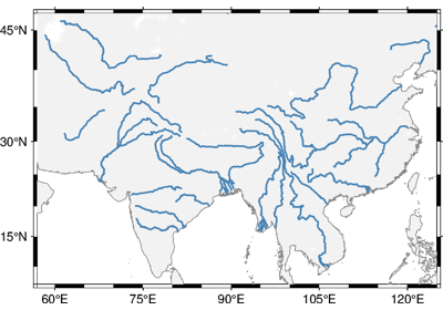 Plot continents, countries, shorelines, rivers, and borders.