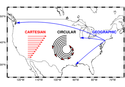 Cartesian, circular, and geographic vectors